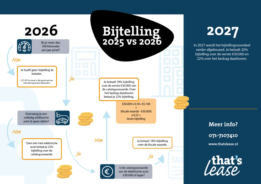 In deze blog leggen we uit wat de bijtelling in 2026 is, welke percentages gelden en wat dit betekent als je een elektrische auto rijdt of overweegt te leasen.